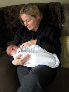 We are still deciding who exactly he looks like. When I saw him for the first time, I was blown away by how much he looked like my baby pictures! I didn't think he would look so much like me as a newborn. I thought for sure he would look much more like his daddy. But, I know newborns change so much and he is not done growing into what he will look like. Brian has already said that he has changed at least four times since he was born!